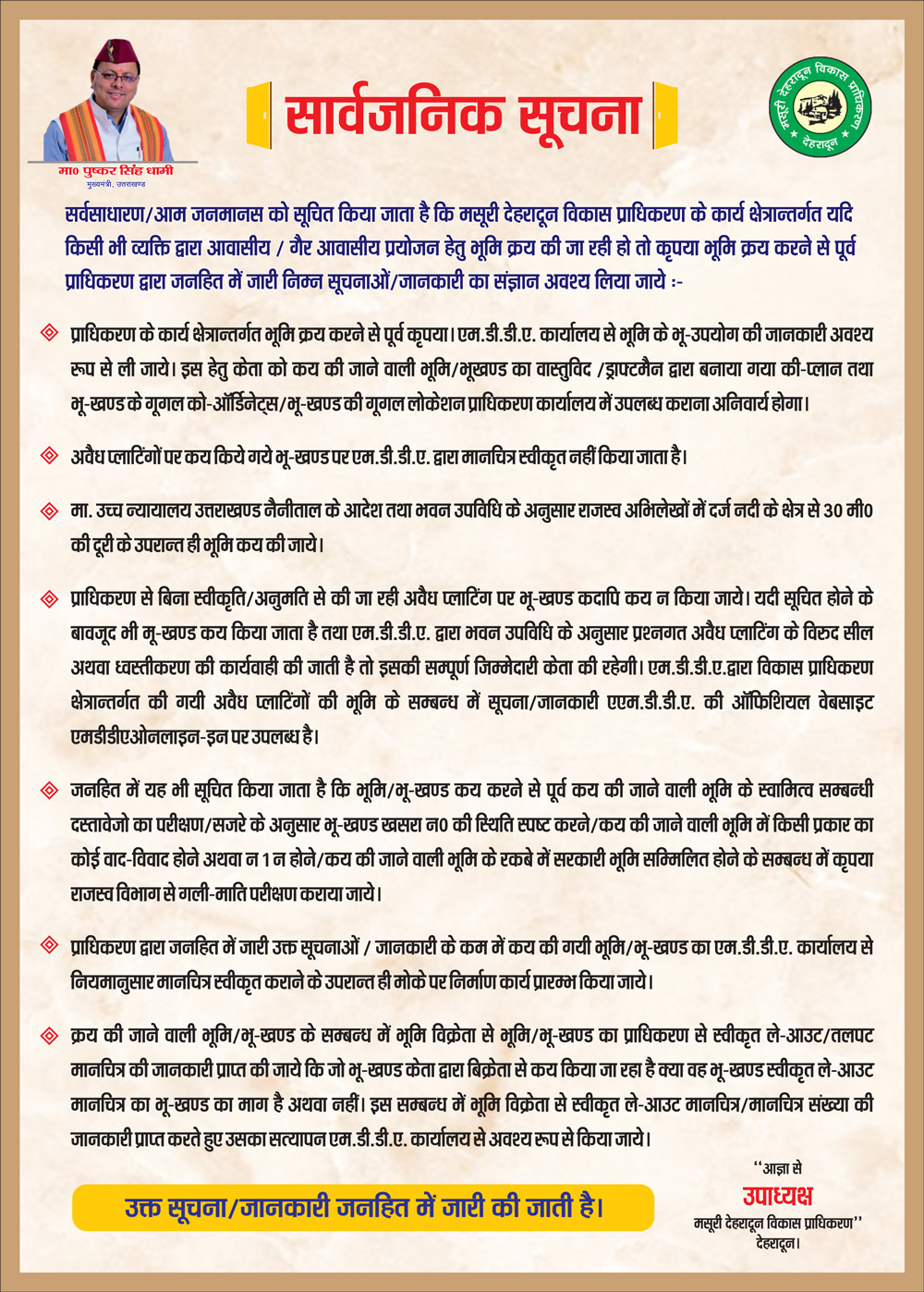 देहरादून। मसूरी–देहरादून विकास प्राधिकरण (एमडीडीए) द्वारा प्राधिकरण क्षेत्र में अवैध प्लॉटिंग और अनधिकृत निर्माणों के…
