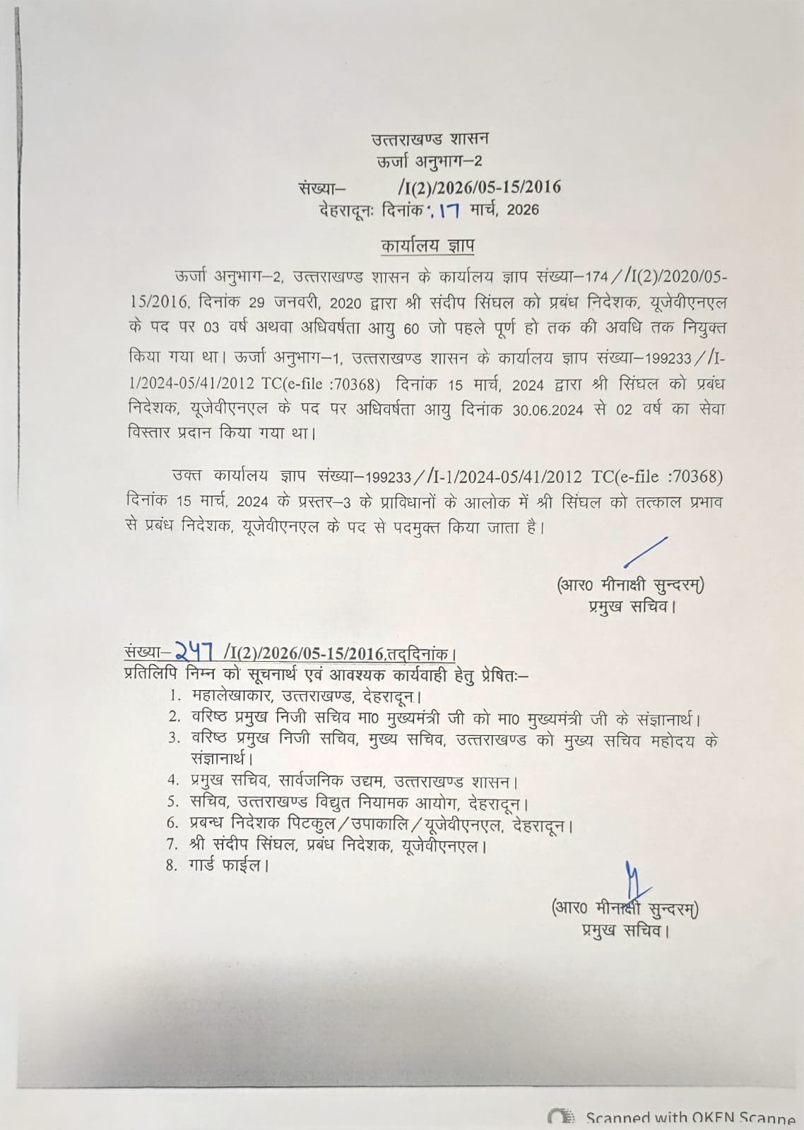 Home/राजकाज/बिग एक्शन : सरकार ने UPCL के MD अनिल कुमार और UJVNL के MD संदीप सिंघल को हटाया, इन्हें सौंपा चार्ज राजकाज बिग एक्शन : सरकार ने UPCL के MD अनिल कुमार और UJVNL के MD संदीप सिंघल को हटाया, इन्हें सौंपा चार्ज Web Editor Send an email 28 seconds agoLast Updated: March 17, 20260 Less than a minute Facebook X LinkedIn Tumblr Pinterest Reddit VKontakte Odnoklassniki Pocket Web Editor Send an email 28 seconds agoLast Updated: March 17, 20260 Less than a minute Facebook X LinkedIn Tumblr Pinterest Reddit VKontakte Odnoklassniki Pocket Share Facebook X LinkedIn Tumblr Pinterest Reddit VKontakte Odnoklassniki Pocket Share via Email Print