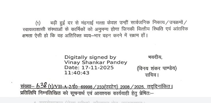 जारी आदेश में यह भी स्पष्ट किया गया है कि बढ़ा हुआ महंगाई भत्ता केवल उन्हीं सार्वजनिक निकायों/उपक्रमों/संस्थाओं में लागू होगा, जिनकी वित्तीय और आंतरिक संसाधन क्षमता अतिरिक्त व्यय वहन करने में सक्षम हो। सरकार के इस कदम से राज्य के हजारों कर्मचारियों को प्रत्यक्ष लाभ मिलने की उम्मीद है।