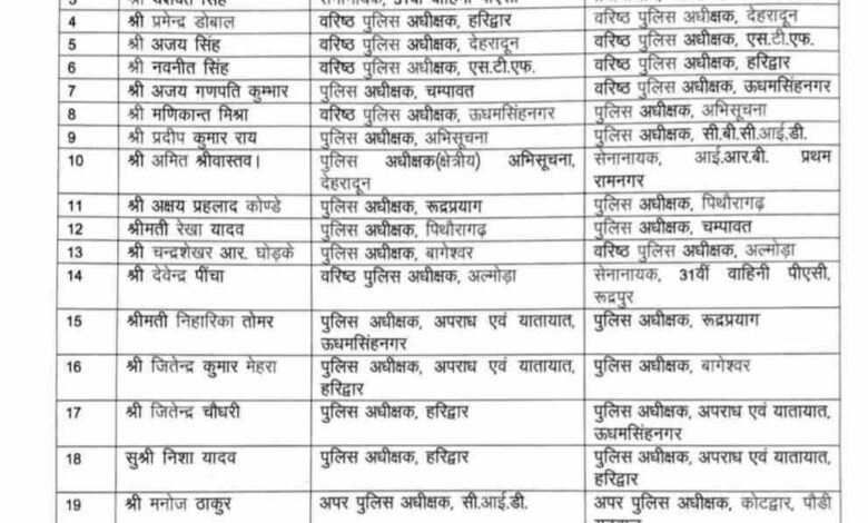 उत्तराखंड में IPS अधिकारियों के बम्पर तबादले, 8 जिलों के कप्तान बदले