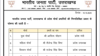 देहरादून। भारतीय जनता पार्टी के प्रदेश अध्यक्ष महेंद्र भट्ट ने राष्ट्रीय अध्यक्ष जेपी नड्डा की सहमति के उपरांत भाजपा की…