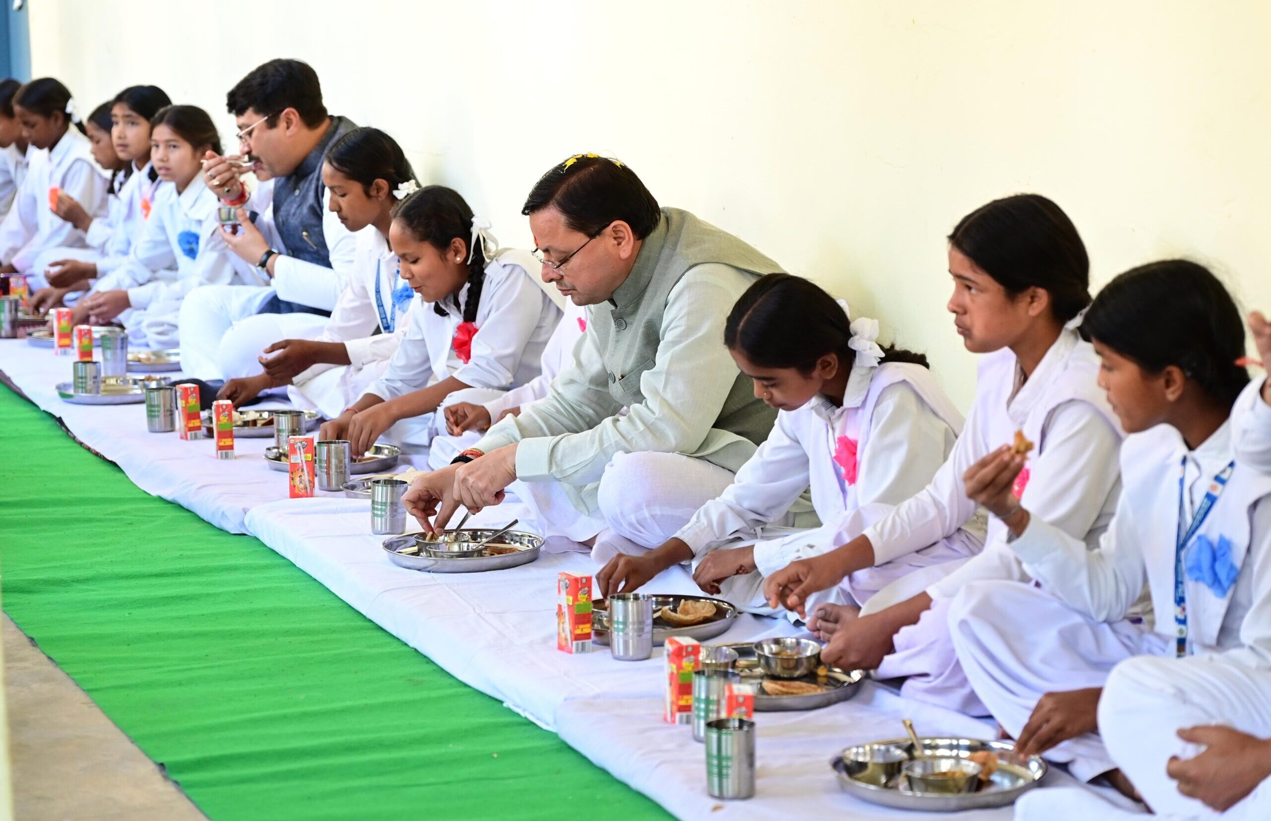 मुख्यमंत्री ने जीजीआईसी चंपावत में अध्यनरत छात्राओं के साथ बैठकर किया भोजन, पढ़ाई का लिया फीडबैक