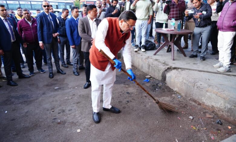 मुख्यमंत्री धामी का ISBT में औचक निरीक्षण, गंदगी देखकर खुद उठाई झाड़ू