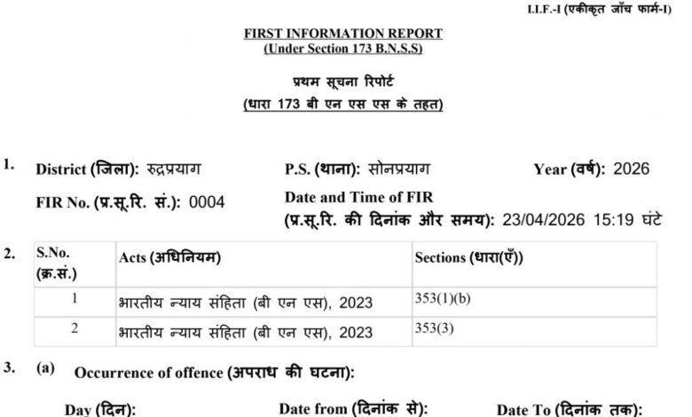 रुद्रप्रयाग। चारधाम यात्रा के संबंध में भ्रामक, अपुष्ट एवं तथ्यहीन वीडियो/सामग्री प्रसारित करने पर थाना सोनप्रयाग में संबंधित व्यक्ति के विरुद्ध प्राथमिकी दर्ज कर विधिक कार्यवाही प्रारंभ कर दी गई है। साथ ही, ऐसे अन्य 4-5 संदिग्ध वीडियो भी चिन्हित किए गए हैं, जिनकी गहन जांच की जा रही है और उनके विरुद्ध भी नियमानुसार कठोर कार्रवाई सुनिश्चित की जाएगी।