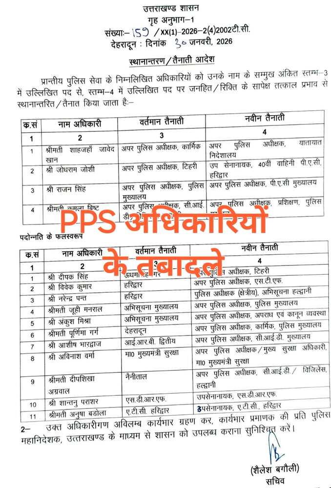 Home/उत्तराखंड/उत्तराखंड में पुलिस अधिकारियों के तबादले, देखें आदेश उत्तराखंड उत्तराखंड में पुलिस अधिकारियों के तबादले, देखें आदेश Web Editor Send an email 1 week agoLast Updated: January 30, 20260 Less than a minute Facebook X LinkedIn Tumblr Pinterest Reddit VKontakte Odnoklassniki Pocket Tagspolice officers see order transferred Uttarakhand Web Editor Send an email 1 week agoLast Updated: January 30, 20260 Less than a minute Facebook X LinkedIn Tumblr Pinterest Reddit VKontakte Odnoklassniki Pocket Share Facebook X LinkedIn Tumblr Pinterest Reddit VKontakte Odnoklassniki Pocket Share via Email Print