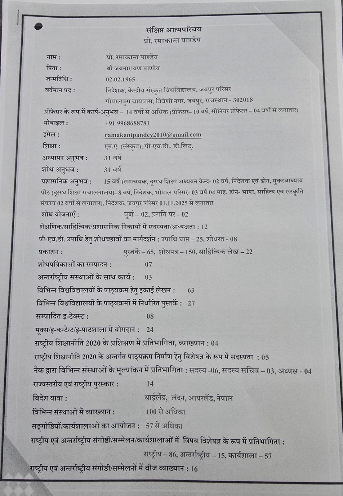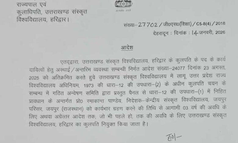 प्रो. रमाकान्त पाण्डेय उत्तराखंड संस्कृत विश्वविद्यालय के कुलपति नियुक्त