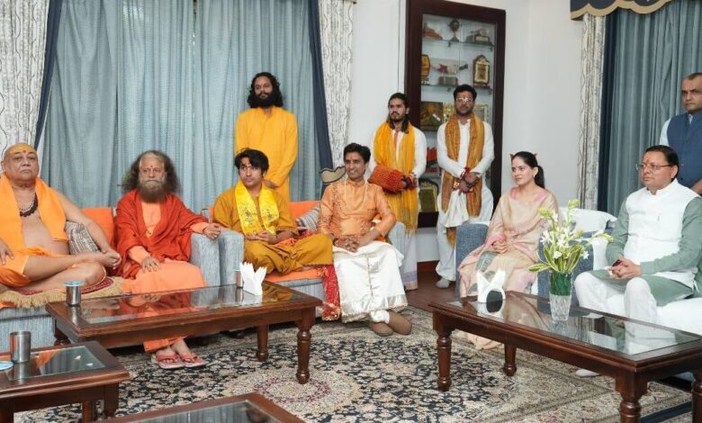 मुख्यमंत्री आवास में आध्यात्मिक संगम, संत समाज ने सीएम धामी को दिया आशीर्वाद