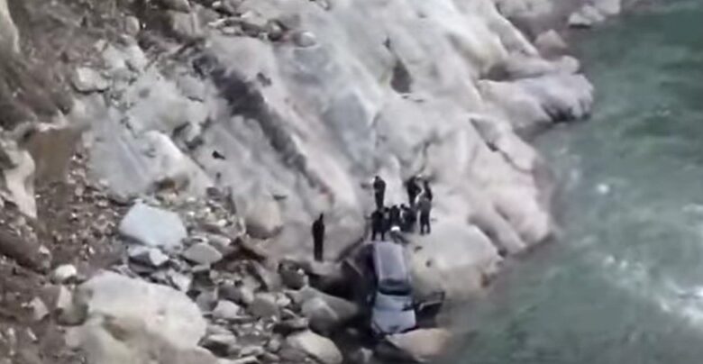 केदारनाथ हाईवे पर दर्दनाक हादसा, पहाड़ी से गिरे पत्थर की चपेट में आने से कार नदी में गिरी