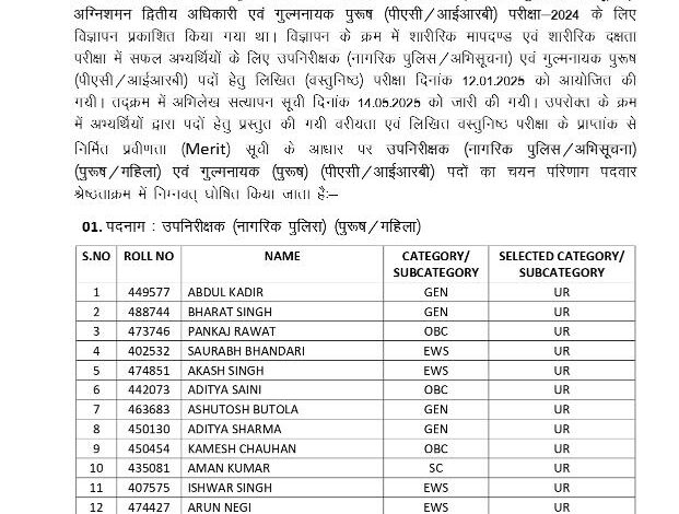 UKPSC: दरोगा भर्ती परीक्षा का रिजल्ट घोषित, चयनित अभ्यार्थियों के नाम यहां देखें