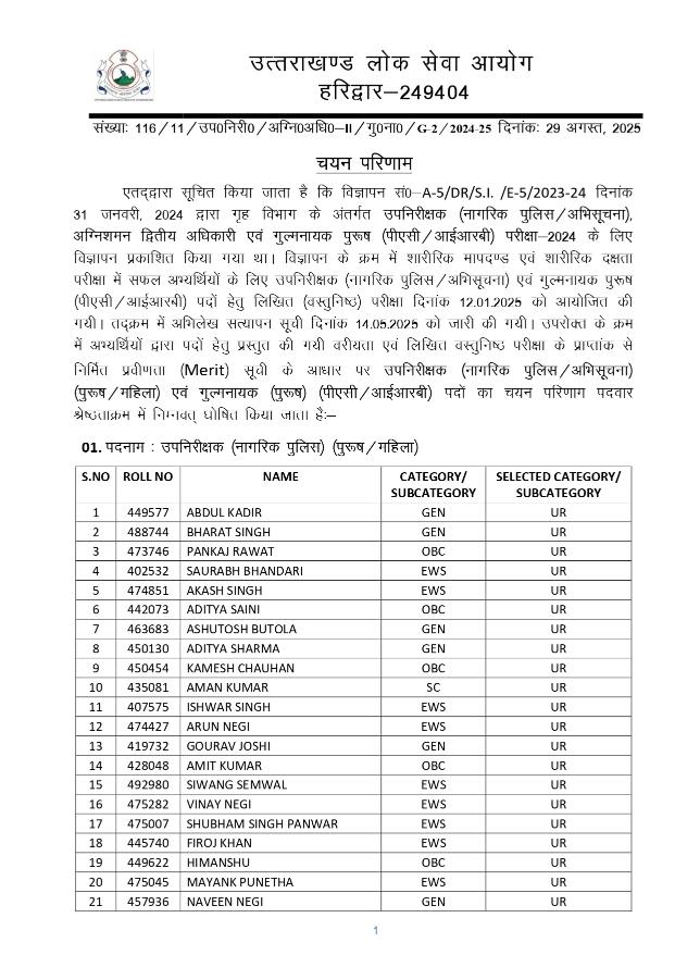 UKPSC: दरोगा भर्ती परीक्षा का रिजल्ट घोषित, चयनित अभ्यार्थियों के नाम यहां देखें