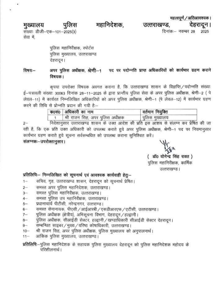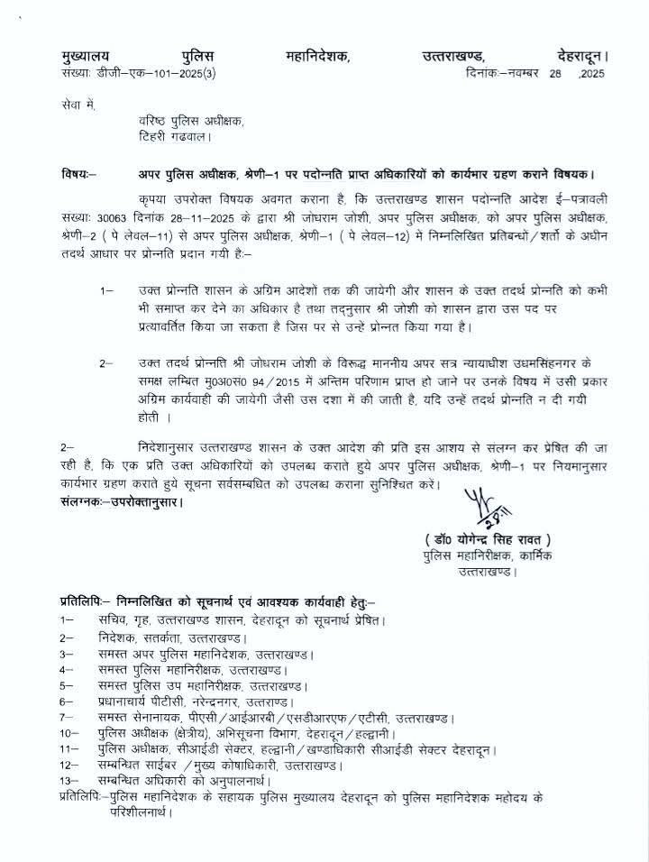 उत्तराखंड में 32 PPS अधिकारियों का प्रमोशन, देखें  आदेश