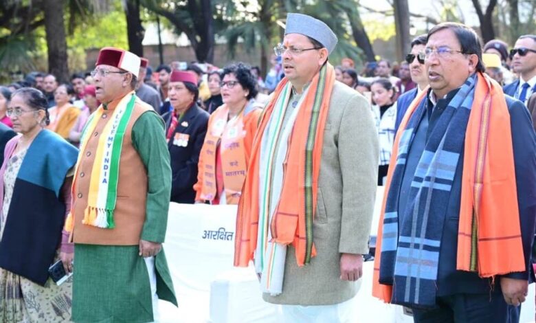 गांधी पार्क में सामूहिक वंदे मातरम् गायन कार्यक्रम में शामिल हुए सीएम धामी